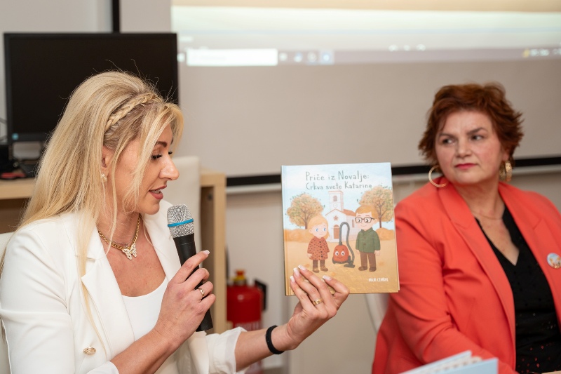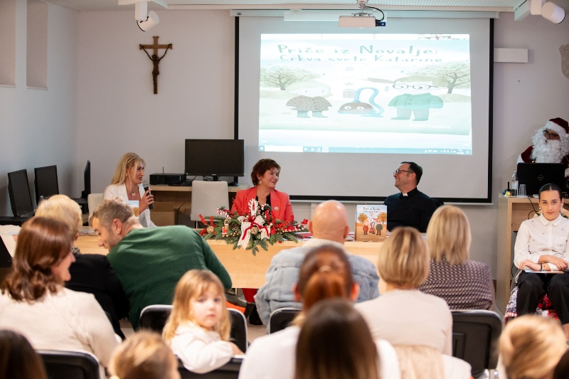 U nastavku je ravnateljica predstavila samu slikovnicu, osvrnuvši se na njezino vizualno oblikovanje, ilustracije i način na koji kroz jednostavan, topao narativ djeci približava lik sv. Katarine i važnost crkve koja je dio identiteta našega grada. Istaknula je kako slikovnica ima i edukativan, istraživački te duhovni karakter, zahvaljujući i karti koja je sastavni dio izdanja, a na kojoj su smještene fotografije crkava s područja Grada Novalje, potičući djecu na istraživanje vlastite baštine.