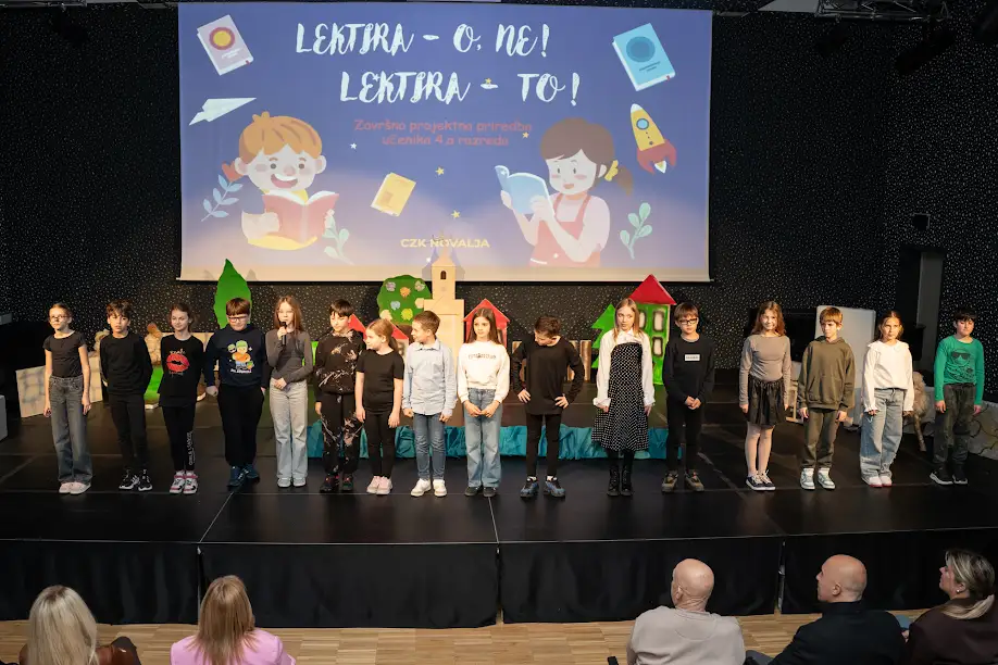 S ponosom ističemo završnu projektnu priredbu učenika 4.a razreda, održanu 23. ožujka 2026. godine u Centru za kulturu Novalja, kao krunu cjelogodišnjeg rada na projektu „Lektira – o ne! Lektira – to!“.